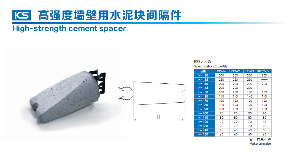 高強度墻壁用水泥塊間隔件